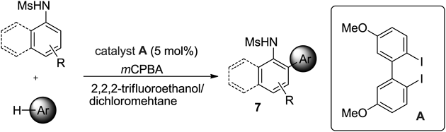 Our coupling method was applied to anilide cross coupling126) (Chart 19). The 2,2′-diiodobiphenyl catalyst was found to be effective in the coupling of aniline, giving the corresponding coupling products 7 in high yield.