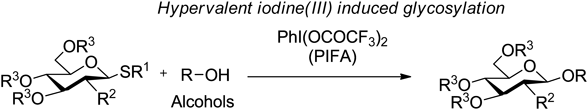 We revealed that PIFA activates thioglycoside in the presence of TfOH and the glycosylation reaction proceeds. Furthermore, this method was useful for the synthesis of monosaccharides and disaccharides. Therefore, the combination of the thioglycoside and PIFA in the presence of TfOH provides an alternative method for the synthesis of biologically active oligosaccharides.