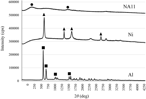 Al, Ni, and NA11 indicate nickel hydroxide, aluminum hydroxide, and nickel–aluminum hydroxide (molar ratioNi–Al = 1 : 1), respectively.