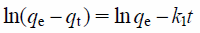 where qe and qt are the amounts (mg/g) of borate ion adsorbed at equilibrium and at time t (h), respectively; k1 is the rate constant of the pseudo-first-order model adsorption (1/h).