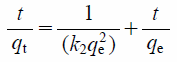 Where, k1 and k2 are the first-order and second-order apparent adsorption rate constants (1/h and g/mg/h), respectively, qt and qe are the amount of adsorbed phosphate ions (mg/g) at time t and equilibrium, respectively.21)
