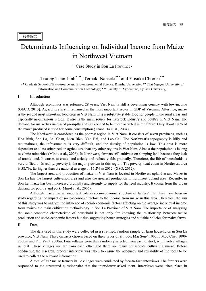 Graduate School of Bio-resource and Bio-enviromental Science, Kyushu University Thai Nguyen University of Information and Communication Technology
