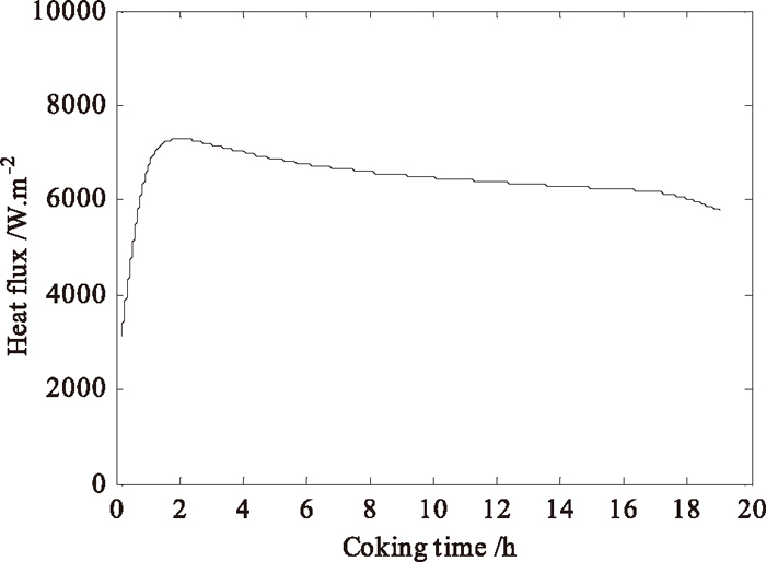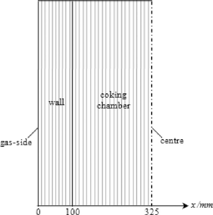 As far as the temperature evolution of coke is concerned, it is applicable to perform unsteady one-dimensional heat conduction simulation in coking chamber, with specified heat flux B.C. obtained from the corresponding heat balance calculation.
