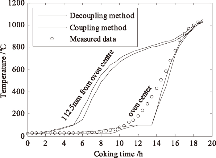 Comparison of coke temperatures simulated by parallel decoupling and coupling methods.