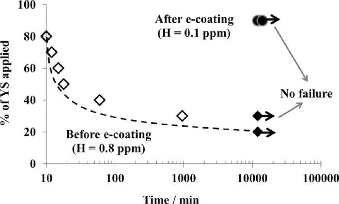 Effect of diffusible hydrogen content on delayed fracture curves.