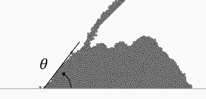 Dynamic angle of repose as a function of time.