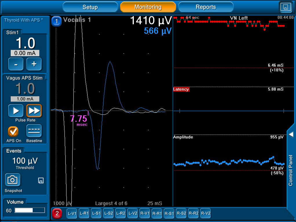 The representative image of NIM. The latency is shown in the right upper field of the monitor, and the amplitude is shown in the right lower field of the monitor.
