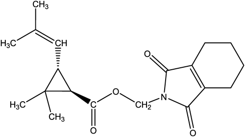 Therefore, an aerosol for controlling flies and mosquitoes that containing d-tetramethrin (Neo-pynamin Forte™, C19H25NO4, (1,3,4,5,6,7-hexahydro-1,3-dioxo-2H-isoindol-2-yl)methyl(1R)-cis-trans-2,2-dimethyl-3-(2-methyl-1-propenyl)cyclopropanecarboxylate; Fig. 1) as the active substance was sprayed in a 6-tatami size room (L 3.6 m×W 2.7 m×H 2.4 m) with an air exchange rate set to 0.5 hr−1. According to the label instructions, the aerosol should be sprayed slightly upward for a total of 10 sec. To follow this procedure and achieve “the average concentration across the indoor space as technically feasible,” we sprayed the aerosol at a slight upward angle for 2.5 sec from each of four small windows at the same time, resulting in a total spray time of 10 sec (Fig. 2).