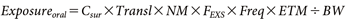 | Parameter | Breathing volume | Exposure time | Body weight | Translodgeable fraction | Skin areas that contact floor | Skin areas mouthed | Fraction extracted in saliva | Frequency | Time mouthed |