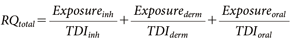 In this case, if the total RQ (RQtotal) for all routes is 1 or less, the exposure amount is deemed below the tolerable level and there is no concern regarding risk.3)