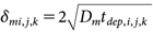 where Ndep_spray,i,j,k represents the number of particles deposited on the surface of the room material cell (i,j,k) during the spraying period; Zm (mol/m3/Pa) is the fugacity capacity of the room material, calculated using Eq. (7); KOW is the octanol–water partition coefficient of the active substance; Sol (mg/L) is the water solubility; P (Pa) is the vapor pressure of the active substance; rm is the oil content ratio, which was set to 0.3 for walls and ceilings and 0.04 for the floor15); Am,i,j,k is the surface area of the room material cell (i,j,k), set to 0.0025 m2; δm (m) is the penetration depth of the active substance into the room material for each cell, expressed by Eq. (8); Dm (m2/s) is the diffusion coefficient of the active substance in the room material; and tdep,i,j,k represents the elapsed time since the active substance was deposited to the room material in each cell. Until the particles are deposited on a cell, a sufficiently small value (10−6 s) was assigned to tdep,i,j,k to prevent divergence in the calculations of Eq. (6).