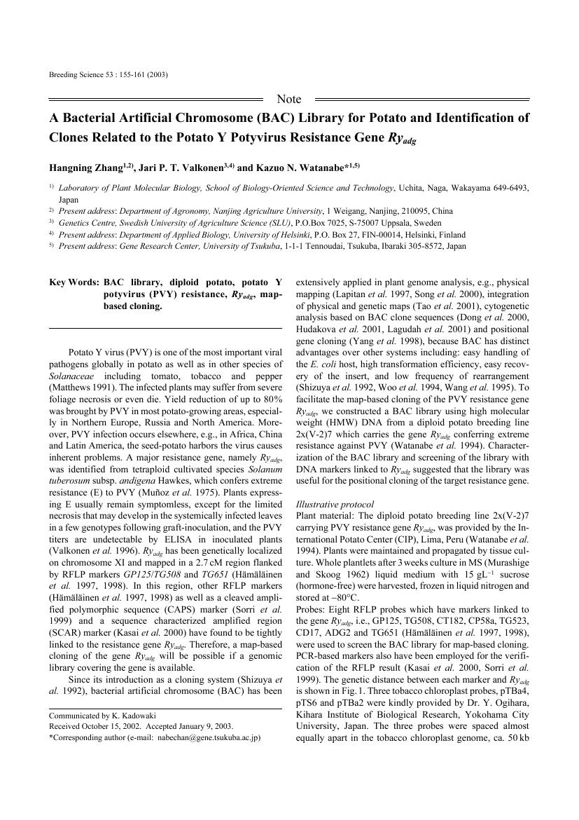 Laboratory of Plant Molecular Biology, School of Biology-Oriented Science and Technology Present address: Gene Research Center, University of Tsukuba