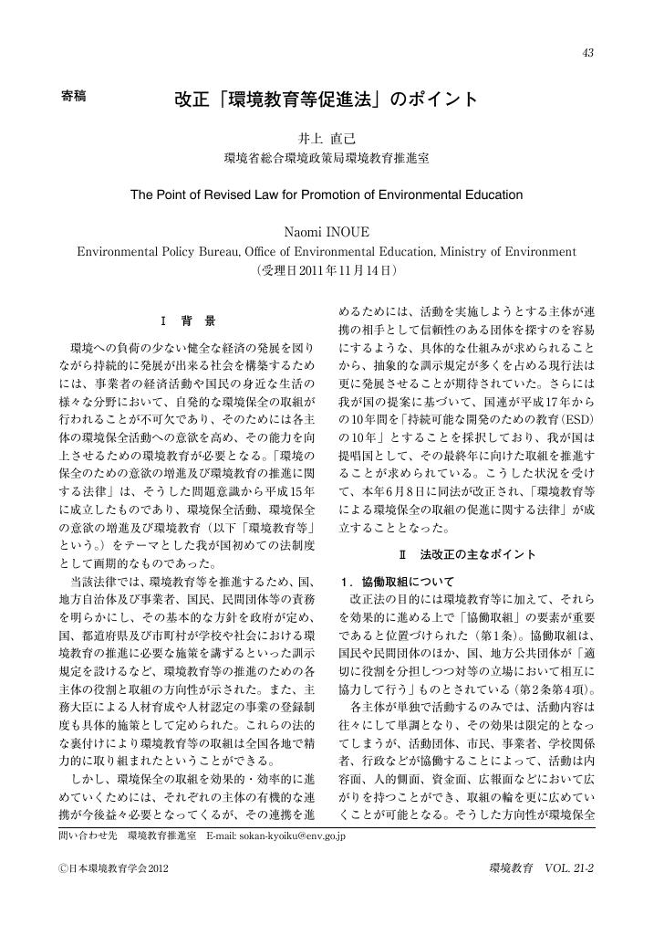 Environmental Policy Bureau, Office of Environmental Education, Ministry of Environment