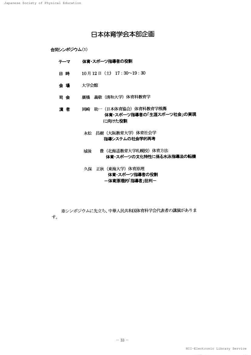 日本体育学会大会予稿集