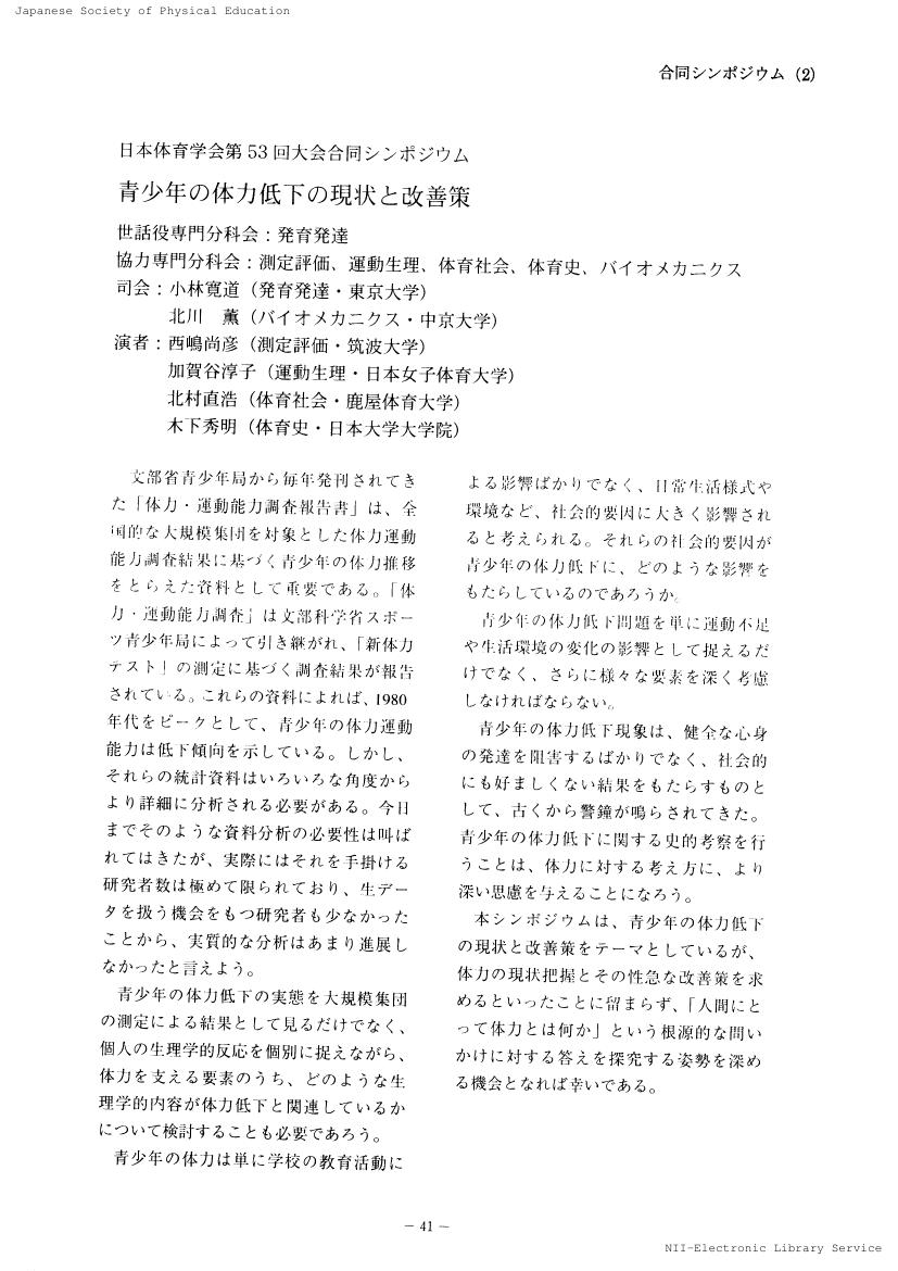 日本体育学会大会予稿集