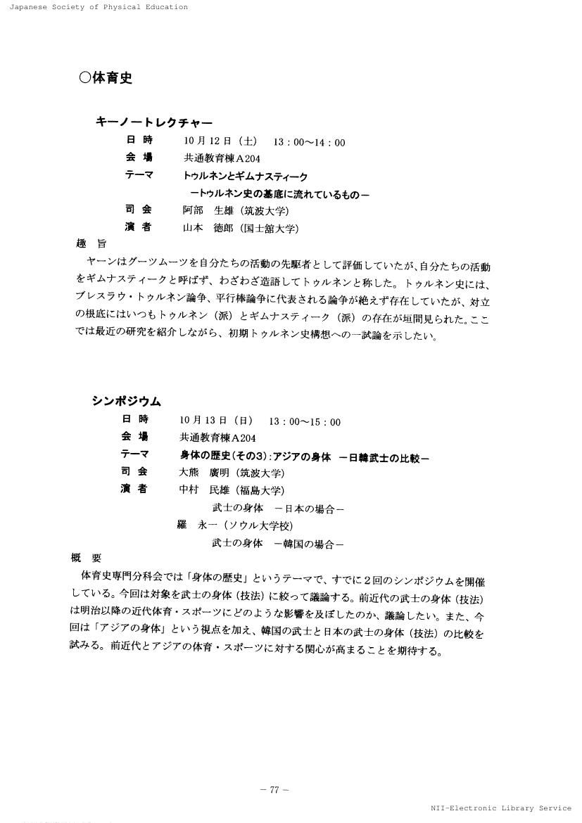 日本体育学会大会予稿集