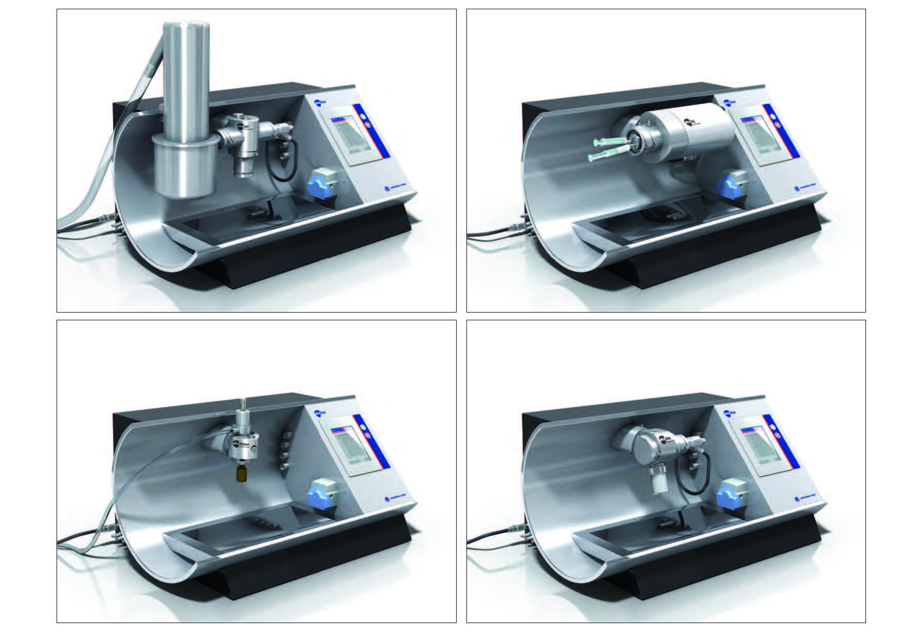 ピコラインは少量のサンプルを用いて粉体処理テストを行うための卓上ラボ機として開発された装置である。1台のプラットフォームに各種モジュールを取り付けることで粉砕・分級・混合・粒子設計のような様々な粉体処理が可能である。運転条件, 測定データ等の情報は正面のタッチパネルに表示され, 同時に内部メモリへ保存される。保存された各種データは運転後に容易にPC等へ取り出すことが出来る。ピコラインは要望に応じて、セラミック仕様・コンテインメント仕様も対応可能であり、医薬分野の超粉砕テストなどに多く使用されている。ピコラインで得られる粉砕サンプルの粒子径は同じシリーズのスケールアップ機種において達成可能である。